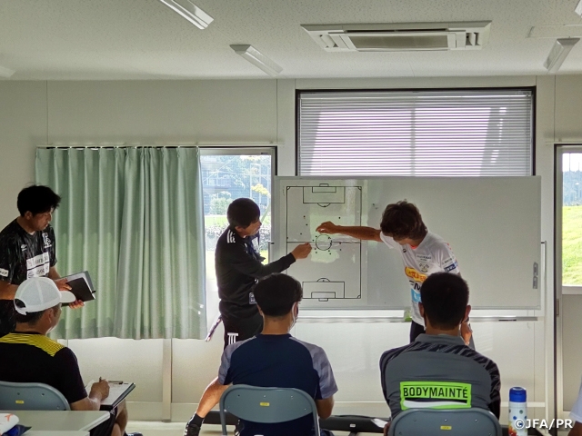 二日間と短い期間でしたが、様々な指導経験をされている指導者の方々と一緒に学べたことがとても貴重な経験となりました。私が受講したA級と指導実践のテーマが変わっているものもあり、そのテーマを理解することを目標に講習会に参加しました。その中で「テーマにおける前提作りの大切さ」「テーマ作りの大切さ」を講習会でのディスカッション、インストラクターのアドバイスを通して再確認することができました。その中でも二日間の中で特に印象に残ったことが、次節の対戦相手に対して自信を持って臨めるものかという問いかけであり、指導者自身が自信を持てるのか、選手たちに自信を持たせて試合に向かわせることができるのか、選手たちにそういったものを提示できているのかがとても大切であると改めて感じました。最後になりましたが、インストラクター、運営していただいたスタッフ、協力していただいた大学生の選手に感謝申し上げます。リーグのシーズン終盤に参加させていただきました徳島のチーム関係者の方々、ありがとうございました。