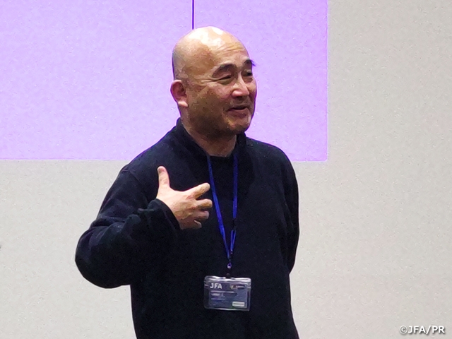 Module1・集中講習①がJFA夢フィールドにて行われました。緊張感がある中始まった先週の濃密な短期講習を経て、既に参加者同士の絆は、とても強いものと感じることができます。講習会では、皆がオープンな姿勢で関わり合っていること、また時には仲間に厳しくもクリーンなフィードバックをしてもらうことで、充実感のある非常に有意義な時間を共有することができました。ピッチで行う指導実践は4人グループとなり、『監督・コーチ・GKコーチ・フィジカルコーチ』といった役割が与えられます。監督がテーマに沿ったトレーニングを組み立てますが、私自身、監督役の時にはグループの仲間にとても助けられました。食事やコミュニケーションを重ねて、自分のやりたいことを各コーチに伝え、コーチからのアイデアをもらいながら次第にトレーニングの内容が深まっていく時間は非常に貴重なものでした。また、プレーヤーとして参加していただいた学生・社会人の方々の懸命にプレーする姿勢にも大きく助けられたことで、講習全体の質と熱が高まった要因の一つとなりました。ピッチを離れた講義では、今後チームをマネジメントする上で、自分の中での軸を再確認することができました。田嶋会長の講義ではリーダーの役割として、「苦しい時にブレないことが大切」という言葉は強く胸に響きました。また、改めて日本サッカー協会の歴史やビジョンを聞き、改革として育成年代のゲーム環境を整えてきたことで現在の多くの日本代表選手が育ってきたことを知ることができました。人材育成マネージメントの講義には、世界的指揮者の広上淳一さんを迎えた講義に引き込まれました。約80人ものオーケストラをまとめて素晴らしい音楽を奏でることは、サッカーの監督と通じるものがあります。広上さんは経験を重ねてきた現在は、「微熱の愛情」を注ぐといった手法で、オーケストラに気づきを与えることで、自らが考えて動く主体的なグループになっていったというエピソードを聞くことができました。また、監督として誰かを真似る必要はなく、自分自身のオリジナリティーのやり方で選手と向き合いチームを作ることの大切さを学ぶことができました。コミュニケーションの構築と実践の講義では、簡潔に伝えることの大切さ「15秒で3フレーズトーク」や「ポポネポの法則」「PEP TALK」といったコミュニケーションを図るテクニックを、実践を交えて学びました。これらは自分自身にとっての課題でもあるため、今後向上させていく上での大きなヒントとなりました。プロフェッショナルコーチング論では、チューターである浮嶋敏さんの監督時の実体験を聞くことができ、監督は次々と決断を下し、チームが進むべき方向性を示し、覚悟を持って困難に立ち向かう強さが必要だということを感じることができました。有名な監督カルロ・アンチェロッティ曰く「監督とは離婚を前提とした結婚だ」とは、納得させられる言葉でした。だからこそ、その結婚期間をできるだけ長く続けられるように、これから1年間のS級受講を通して、監督として必要なスキルを身につけ、いかなる状況にも対応できるように備えたいと思います。