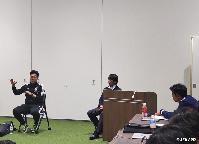 プロフェッショナルコーチング論では、浮島敏さんから契約の際に留意することや監督とチームの関係性ついてのお話を伺い、JFA普及ダイレクターの中山雅雄さんからは、「グラスルーツ」についてお話いただきました。Jリーグや海外で活躍するすべての選手がグラスルーツから生まれていることや、代表チームの強化もグラスルーツあってのものということを知りました。また、多くのサッカーファミリーが生涯を通してサッカーに触れられる機会を創出することで、日本サッカーが発展していくという、グラスルーツの大切さを改めて強く感じました。