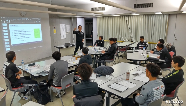 昨年度新たに開設されたA級スキルアップ研修を今年も実施しました。本研修は、S級受講を目標としているA級コーチジェネラルライセンス保有者を対象とし、1泊2日のリフレッシュ研修会という形で開催しています。今年度は全3コースを実施。参加者3名・チューター1名の4名1グループという少人数で実施された指導実践では、トレーニングの細かい振り返りやテーマに対する熱のこもった意見交換が交わされました。