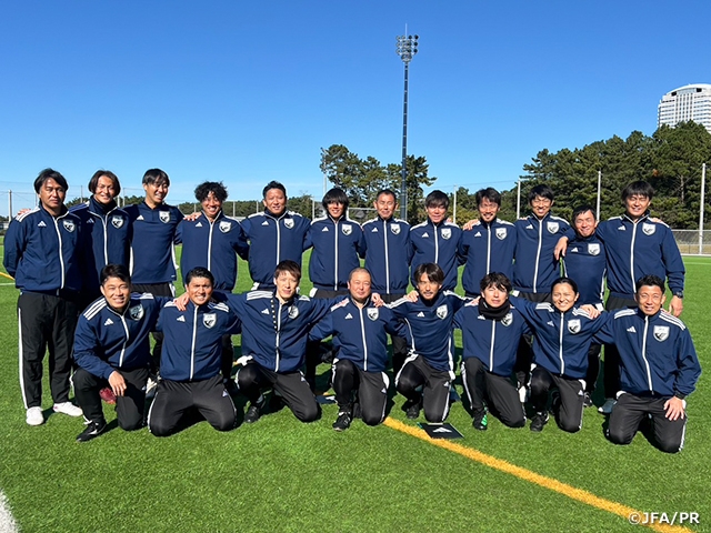 永井 2023年には「KONOSU CITY FC(鴻巣シティフットボールクラブ)」に移り、そこでも選手兼監督を務めていたのですが、やはり社会人リーグは育成に近い部分があったり、選手みんなが仕事を抱えながらプレーしているため、トレーニングでメンバーがそろわなかったりする。その中で、どう工夫しながらチームをつくり、同じ方向を向いて戦い、結果を残していくかということが求められます。一方で、しっかりメンバーがそろっていて、選手全員の志も高い中、指導者としてよりレベルの高い場でチャレンジしてみたいという気持ちも強くなっていきました。それが受講につながった感じです。