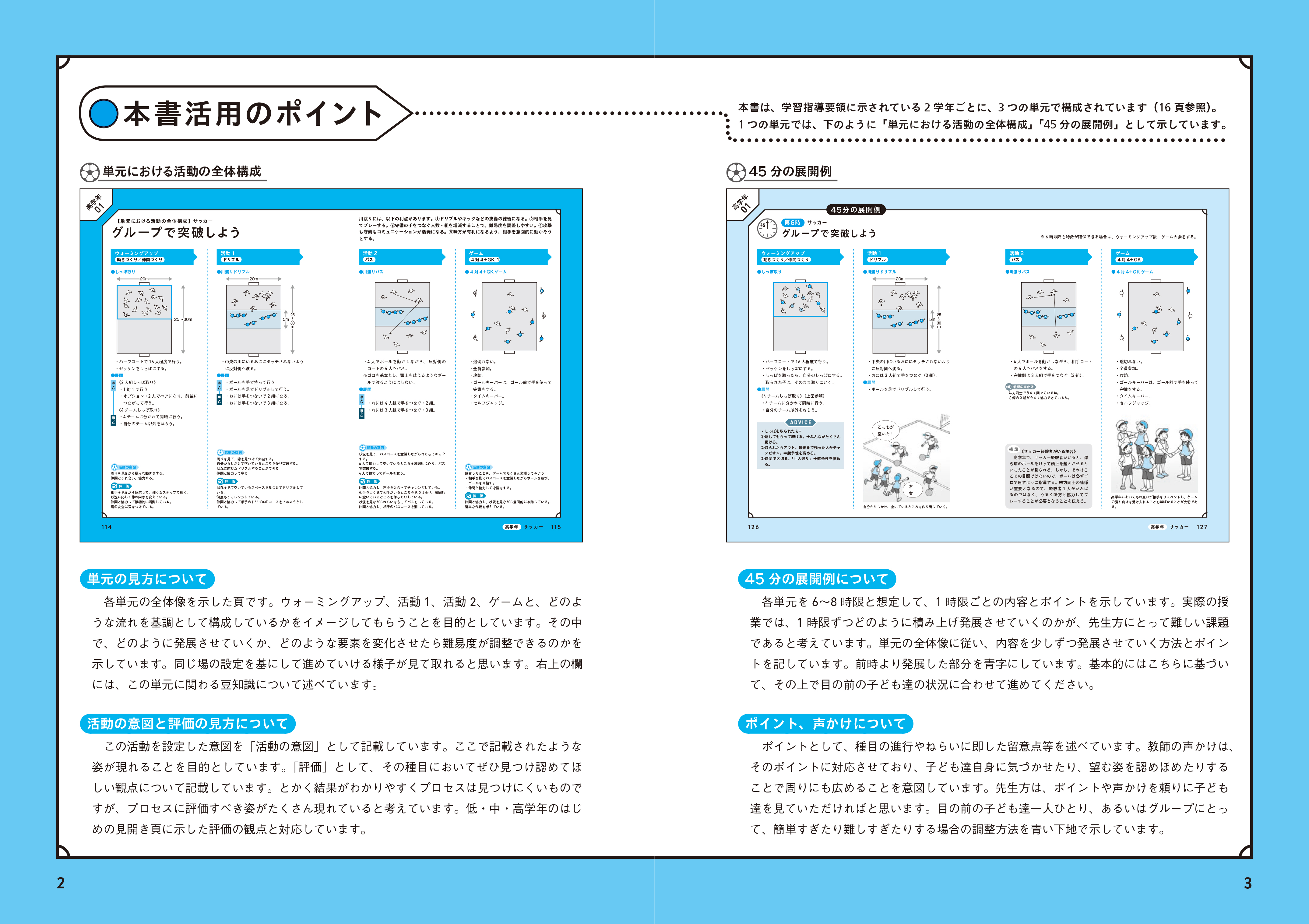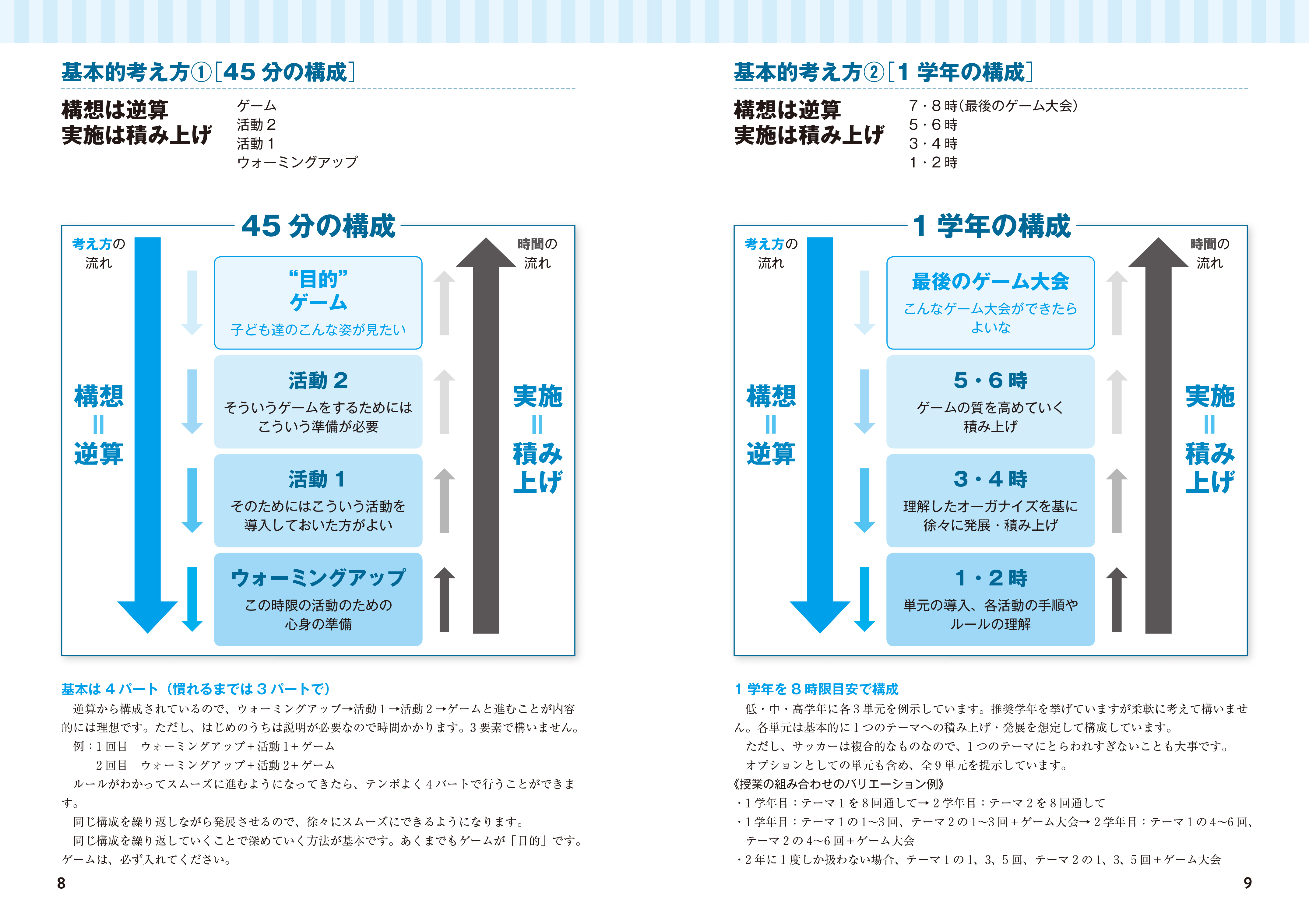 体育授業で行う「ボールけりゲーム」「ミニサッカー」「サッカー」指導をイラスト・図解を交え4段階で分かりやすく解説します。単元は全部で9つ掲載。この1冊で全学年のサッカー授業に対応することができます。