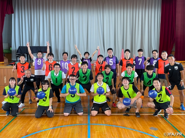 「サッカー」と聞くと、苦手なんだよなぁ・・・とどうしても思ってしまっていましたが、とても楽しくあっという間に時間がすぎました。すぐに名前を呼んでほめてくださったので、うれしかったです!! 子どもたち主体で授業を組み立てることが私もたくさん共感できました。