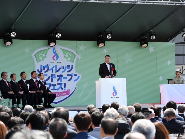 In the past 20 years, the level of football in Japan has developed in a historical pace. During that span, J-Village has served a pivotal role, as the national team members polished their techniques, young players were developed, and the coaches and referees were trained here at this location. J-Village is an essential piece for the growth of the Japanese football community, both in the past and in the future. Today, I am very grateful to be welcoming the grand opening of this venue. However, we still need your support. It is still uncertain if the football players and sports fans will come here each day. We are not sure if many people will make their ways to this venue using the J-Village Station. We have so many tasks to address ahead of us. In 2021, the JFA Academy Fukushima boys’ team will return to this venue, followed by the girl’s team in 2024. Our true goal is to fill this place with many people and create an atmosphere filled with children’s laughter. J-Village is a venue we can proudly present to the world. We hope to spread the words and make this place a venue where everyone can gather.