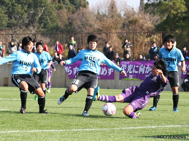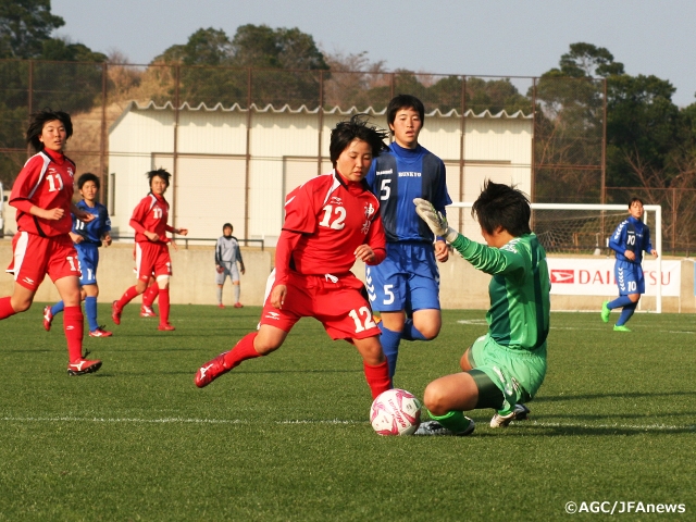 While Hiroshima Bunkyo's KAWAI Mizuki fired a free kick but it hit the cross bar in the 52nd minute, Kamimura Gakuen continued to their ability to put their shots into the goal. In the 61st minute, WATANABE Rena half-volleyed the ball that was relayed by her teammate after a cross from outside for a score, and then in the 72nd minute, SONODA Yuna didn't miss a clearing mistake by the opponents and put it into the goal. Kamimura Gakuen scored all the five goals by different players and clinched a round-of-eight round berth.