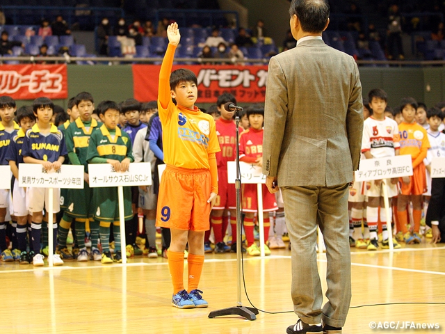 The 24th Vermont Cup All Japan U-12 Futsal Championship started on Sunday 4 January. Approximately 3500 teams applied for this championship and 48 teams, who got through the prefectural qualifying round, came to the Komazawa Olympic Park General Sport Ground Gymnasium in Tokyo. At the opening ceremony Oka Sora, the captain of azzurro WAKAYAMA FUTSAL CLUB, made the following pledge for fair play in summary.