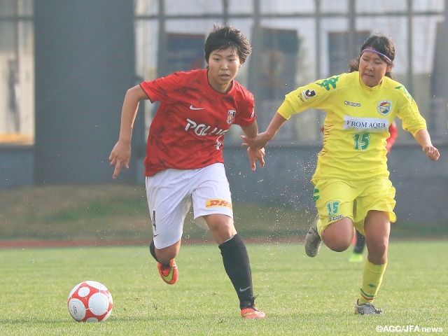 In the second half, JEF won the ball at higher position and got close to the opposing goal to look for an equaliser, but failed to break through Urawa’s defence who were desperate to halt them. Although JEF had a misfortune that centre back and captain Oya Madoka was sent off the pitch by injury, they kept composure and geared toward goal. Urawa also did not lose their concentration and prevail with tenacious defence until the end. Urawa eventually kept the lead earned in the first half to advance to the final.