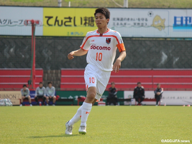 Aomori Yamada High School (Aomori), who took their first loss of the season in their previous game against Funabashi Municipal High (Chiba), will take on Consadole Sapporo Under-18 (Hokkaido) as they wrap up their three consecutive away games. “We weren't running from the beginning. As we'd won consecutive games, we were putting our guards down a little,” Hirosue Riku of Aomori Yamada says. The team hope to retrieve their basement with their running. “If we take consecutive losses, we might fall into a trap, but if we win, we can get some momentum back. The next game will be important,” Hirosue adds.