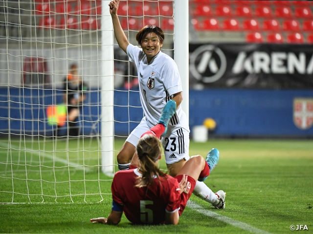 The substitutes played a key role in this match, as CHIBA Remina, who was introduced in the 78th minute, made a sliding effort to convert the cross of Hasegawa in the 82nd minute, marking her first goal in her first international cap. After NARUMIYA Yui added another goal to the tally, Japan earned a 5-0 shutout victory over Serbia.