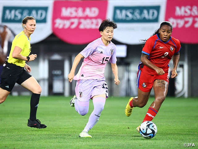 Japan took the initiative from the onset, as NAGANO Fuka (Liverpool FC) and HASEGAWA Yui (Manchester City) continuously delivered passes into the attacking third. The opening goal came in the 33rd minute when SHIMIZU Risa (West Ham United) chased down a long feed from Hasegawa before launching a lobbing shot that went over the reach of Panamanian goalkeeper Yenith BAILEY and into the net. Just four minutes later, Hasegawa scored a goal of her own by responding to a through ball from Tanaka and calmly finding the back of the net.