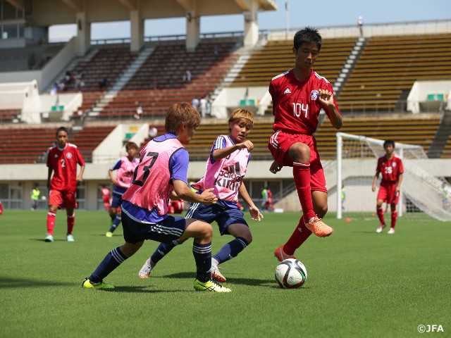 On the previous day they only had light training particularly for conditioning, but this day the players had training both in the morning and in the afternoon. After the warming up session in the morning, they had 5-on-3 passing exercises and an 11-on-9 half pitch mini game against local high school men’s team. During these sessions, they checked differences and characters of each player especially in physical fitness and how they respond to pressures.
