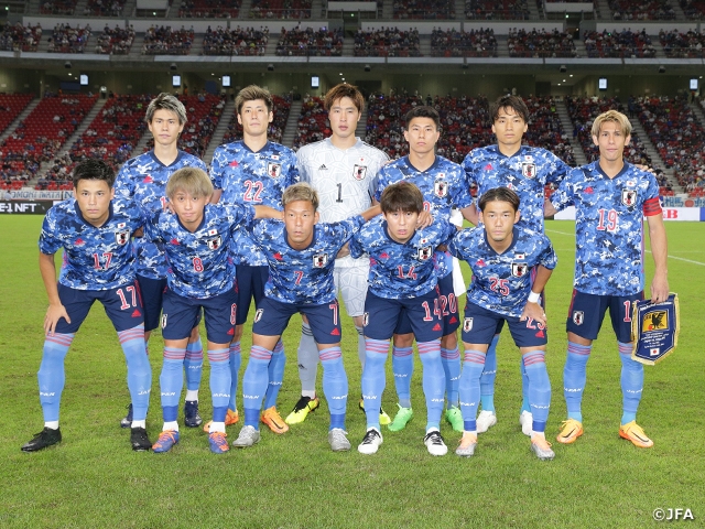 Following their 6-0 victory over Hong Kong on Tuesday 19, Head Coach MORIYASU Hajime rotated his entire starting line-up. OSAKO Keisuke (Sanfrecce Hiroshima) was given the start in goal, with KOIKE Ryuta (Yokohama F. Marinos), NAKATANI Shinnosuke (Nagoya Grampus), ARAKI Hayato (Sanfrecce Hiroshima), and SASAKI Sho (Sanfrecce Hiroshima) forming the four-man defence line. In the midfield, HASHIMOTO Kento (SD Huesca) and NOTSUDA Gakuto (Sanfrecce Hiroshima) were placed as the defensive midfielders, while WAKIZAKA Yasuto (Kawasaki Frontale) was named as the attacking midfielder. MIYAICHI Ryo (Yokohama F. Marinos) and MORISHIMA Tsukasa (Sanfrecce Hiroshima) were positioned in the flanks, with HOSOYA Mao (Kashiwa Reysol) taking on the number nine role.