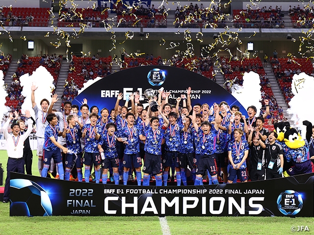 From the moment the players were assembled, they worked hard every day with the goal of winning the title. Despite the fact that many of the players were working together for the first time, the players managed to function well as a team in a short period of time, because they actively communicated with each other, both on and off the pitch. The coaches did their best to prepare the players to get on the same page and the team staff supported the inexperienced players, so it was great to see everyone's efforts paying off in the end. Despite all the pressure, the players never lost their composure, and showed their determination to win the game. They worked hard from start to finish and scored three great goals. The players also worked well as a team, bringing out the best in each other to create good chances upfront. Machino and Nishimura both played a key role to initiate the team’s defence, as they led by working hard from the front line. We did not necessarily change our approach throughout the competition. Although we struggled to score goals in our second match, we showed lots of improvement in defence compared to our first match. From the second to third match, we managed to raise the quality of our combinations in both offence and defence. By winning this tournament, the players were able to showcase their capabilities and raise the value of the J.League and the players who play in the league. There were several players we would like to include in our tour in September and a number of them would be in consideration for the World Cup squad. I would like to make a series of observations to gather information on the players and make the decision. I am very happy with our first title. It is the result of the hard work of the players and staff. But our ultimate goal is to make history at the World Cup in Qatar, so we are not going to get carried away until then.