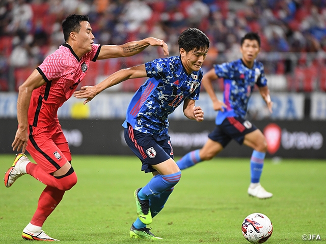 HOME > National Teams > EAFF E-1 Football Championship 2022 Final Japan TOP > NEWS > 【Match Report】SAMURAI BLUE defeat Korea Republic 3-0 to claim first title under the Moriyasu regime