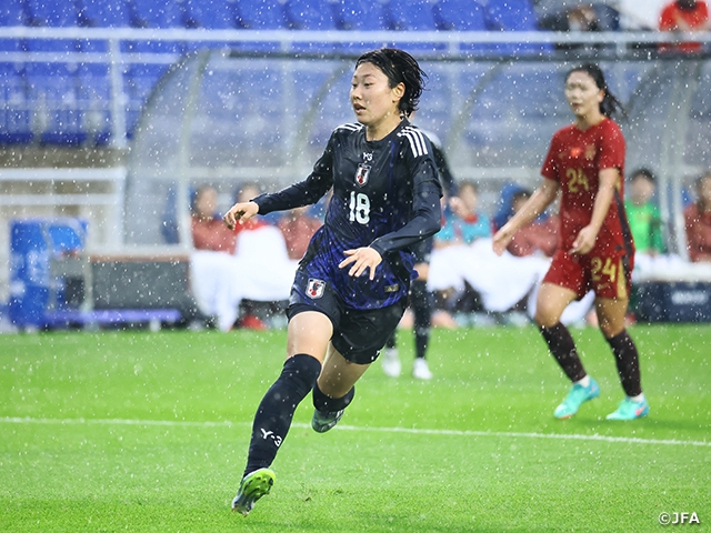 Head Coach Nils NIELSEN introduced KANNO Oto (Nippon TV Tokyo Verdy Beleza) at the start of the second half, and the team began to build more attacking threats through Kanno’s precise distribution. In the 55th minute, Hiwatari struck a shot from Kanno’s left corner kick, but it was blocked by the opposition once again. Three minutes later, China PR’s JIN Kun unleashed a shot on goal, but Hirao managed to catch safely. In an effort to change the dynamic of the game, Japan switched to a back three, pushing Takahashi into the attacking third alongside substitute SHIOKOSHI Yuzuho (Nippon TV Tokyo Verdy Beleza). In the second minute of additional time, Takahashi pounced on a defensive error and fired a shot narrowly wide to the right. She had another opportunity just two minutes later, but failed to hit the target, and the match ended in a goalless draw.