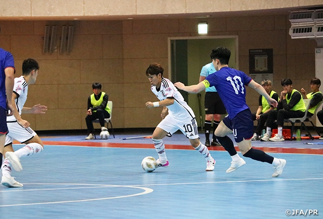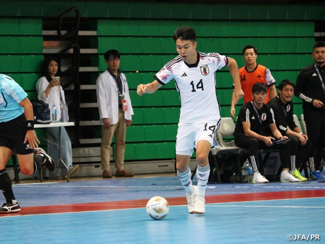UCHIMURA Shunta (Shonan Bellmare), who came on at the start of the second period after sitting out the first, gave Japan a huge boost as they created a number of close chances against Chinese Taipei. With the momentum in their favour, Japan extended their lead when Uchida scored his second of the game in the 33rd minute. SAITO Hyuga (Shriker Osaka) and YAMANAKA Shoto (Pescadola Machida) provided fresh legs off the bench as Japan kept their opponents at bay. With time running out, Chinse Taipei deployed their powerplay in the closing minutes, but FIUZA Fabio (Shonan Bellmare) made his presence felt in front of the goal to maintain the clean sheet, as Japan walked away with a 3-0 victory.