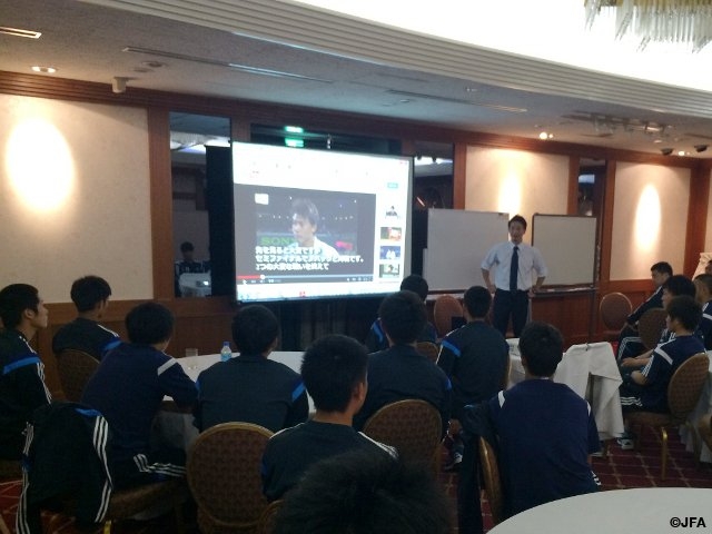 In a meeting after dinner just as yesterday, they were lectured about how to deal with media interviews and how to send information via social media. The players watched a video about top young athletes of their generation being interviewed and learned a lot about comments and behaviours.
