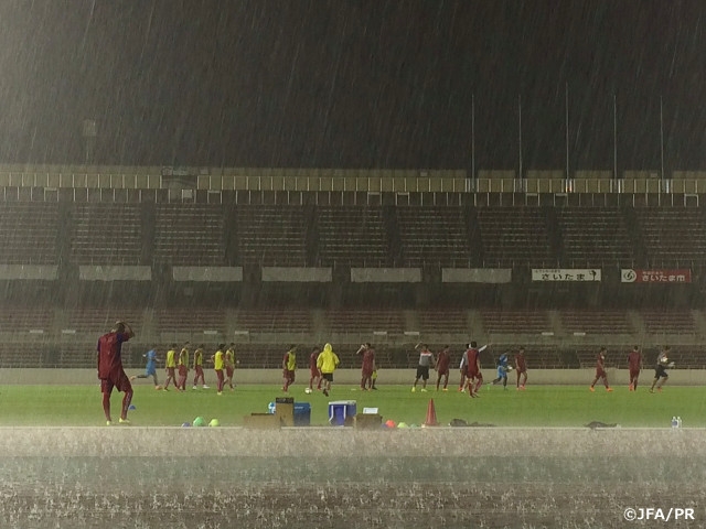 The squad relieved their fatigue at hotel with Cambodia cuisine served by the ambassador himself before working on the first training in Japan in heavy rain in the evening.