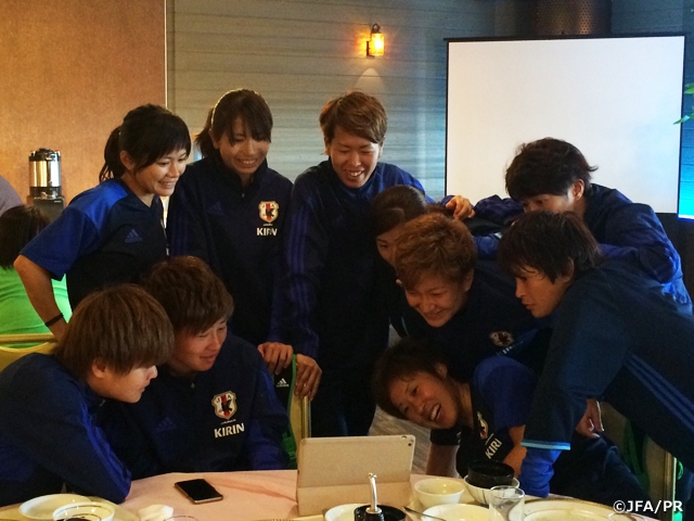 Miyama said of the current state of the team, "We have lots of experienced players and want to come through as a matured team with keeping a balance between on and off. I think everyone on the team came here ready. We will try to be a team who can play as a group." The players communicate with each other both on and off the pitch on a daily basis. During their meal time, the players got together around a tablet device to look back their play.