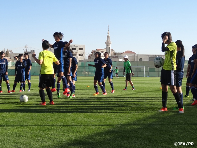 U-17 Japan women's squad hold an official training at the third group-stage match venue in World Cup Jordan