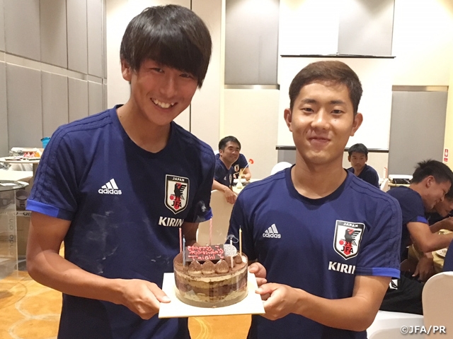 At dinner time, the team celebrated Matsumoto’s 20th birthday, as WATANABE Kouta took the lead to sing the birthday song. Matsumoto, who is the only player that has played in all three matches thus far, shared his aspiration, “I would like to get myself involved in our plays as much as possible and anticipate to deliver a through ball when I have the chance.”