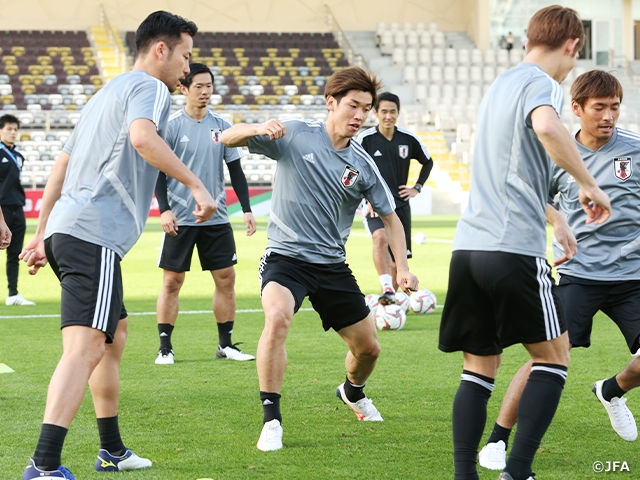 On Tuesday 8 January, one day ahead of their first match against Turkmenistan at the AFC Asian Cup UAE 2019, the SAMURAI BLUE (Japan National Team) conducted an official training session at the match venue at Abu Dhabi, while Coach MORIYASU Hajime appeared in the official press-conference where he stated, “The team is in best condition under the current circumstance.”