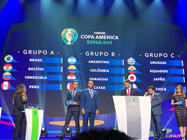 On Thursday 24 January (local time), the South American Football Confederation (CONMEBOL) held the group stage draw for the CONMEBOL Copa America Brazil 2019 (14 June – 7 July) at Rio de Janeiro, Brazil. As a result, the SAMURAI BLUE (Japan National Team) was placed together with Uruguay, Ecuador, and Chile in Group C. The draw results and the match fixtures for Japan are as follows.