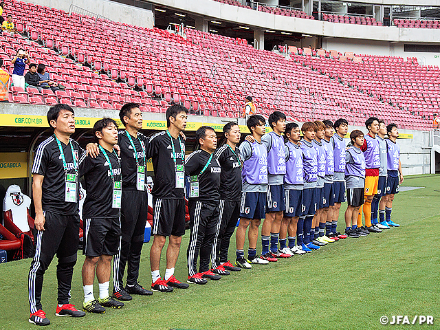 Japan faced Brazil in an away match that took place at Arena Pernambuco, which was a stadium utilised during the 2014 FIFA World Cup Brazil™. The players were overwhelmed by the aggressive pressure applied by the Brazilian side and conceded the opening goal from a PK but managed to equalise with the goal scored by Tanaka. With momentum on their side, Japan scored two more goals in the second half to take the lead. Despite giving up a goal to Brazil and receiving a red card in the closing minutes, Japan showcased their resilience to win the match 3-2 as Coach Yokouchi later reflected, “Every player fulfilled their duties and executed the game plan to earn this result.”