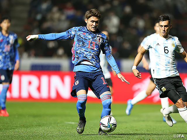 Two friendly matches against a true international powerhouse were scheduled, as Japan squared off against the U-24 Argentina National Team. Japan lost the first match 0-1 as they struggled against what Coach Yokouchi described as “a play style rarely seen in Japan.” However, the team bounced back in the second match, where they took the initiative from the early minutes to earn a 3-0 victory. Reflecting on the match, Coach Yokouchi praised his players by pointing out, “We were able to win more duels than our opponent.” HAYASHI Daichi brought more competition to the team, as the striker scored a goal in his first call-up to the team.