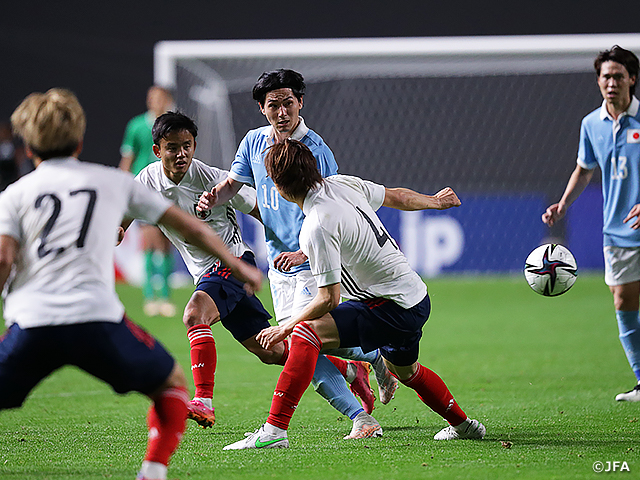 The team was reassembled after all activities were shut down for nearly a year due to the corona-pandemic. Nine players were newly called-up for the training camp, as Coach Moriyasu mentioned, “Many new talents have emerged while the Olympics was postponed for a year.” The team played a training match against the Kanto University Select Team on the 26th, where they won 4-0. Many players considered this camp as their final opportunity to make a case for themselves, giving them extra motivation to do well on the pitch. The camp allowed the team to discover new talents ahead of the Olympics, as Coach Moriyasu shared his gratitude, “We are thankful to be given this precious opportunity.”
