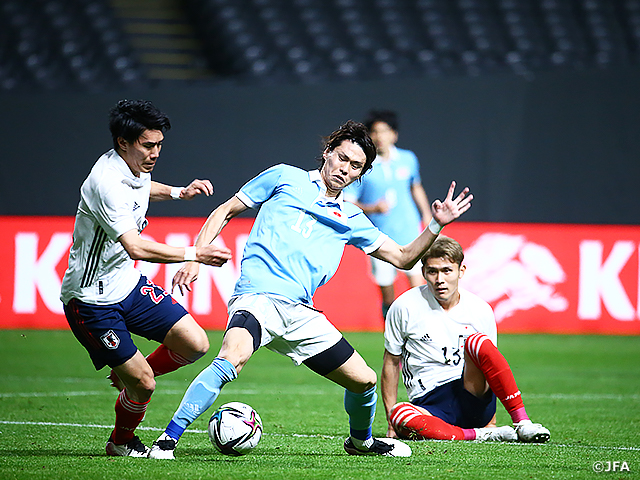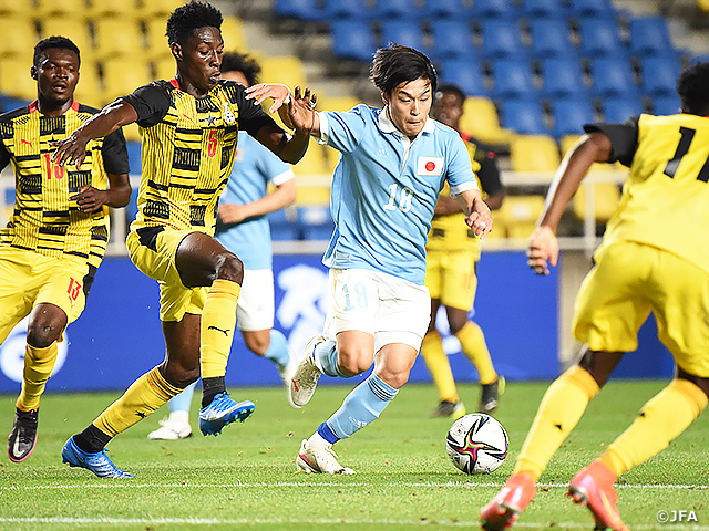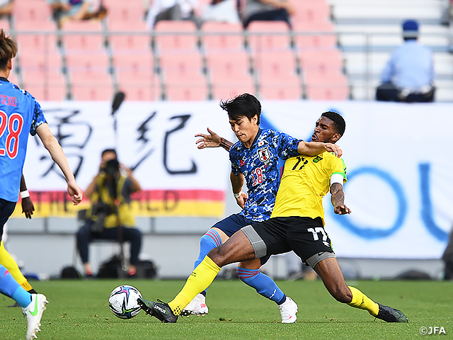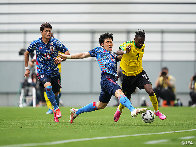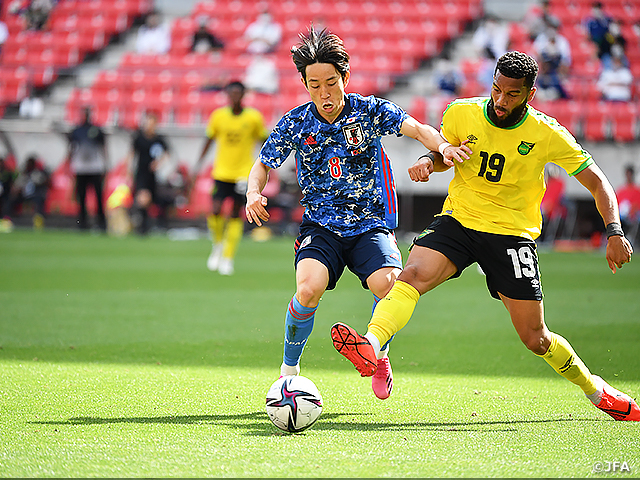 Following their match against Ghana, the U-24 Japan National Team faced the Jamaica National Team in an international friendly match played at Toyota Stadium (Aichi) on Saturday 12 June. This match against Jamaica’s senior squad was the final prep match before announcing the 18-man roster for the Olympics, which would conclude the series of activities that took place since 31 May. Although the number was limited due to the countermeasures against COVID-19, fans were allowed into the stadium, giving the players extra motivation to showcase a strong performance. The U-24 Japan National Team showcased their dominance by keeping the Jamaican side to zero shots in their 4-0 shutout victory, concluding the series of activities held in June on a high note.