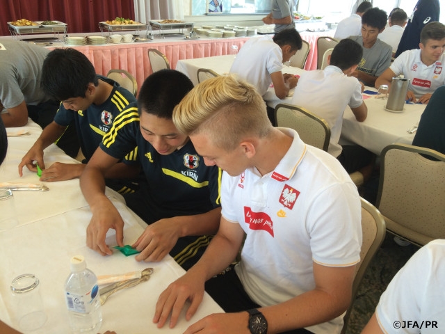 At the lunch time, all the players of the four participating teams had exchanged with each other, making folded-paper cranes. The U-16 Japan team, who held a short training checking their set plays in the afternoon, would be set to play against U-17 Hiroshima Selection Team on the next day.