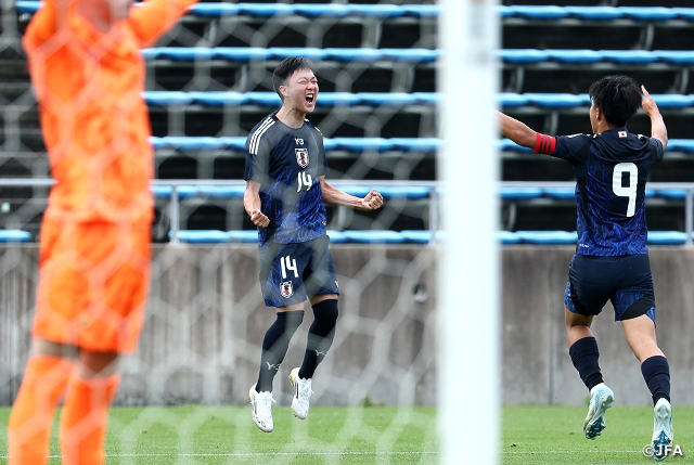 With momentum on their side, Japan extended their lead in the 39th minute when Miidera challenged for the ball up front, and Takaki latched onto the loose ball to score the second goal. Reflecting on the moment, Takaki said, “I was able to demonstrate my instinct as a striker.” He then ran towards the bench to celebrate with his teammates.