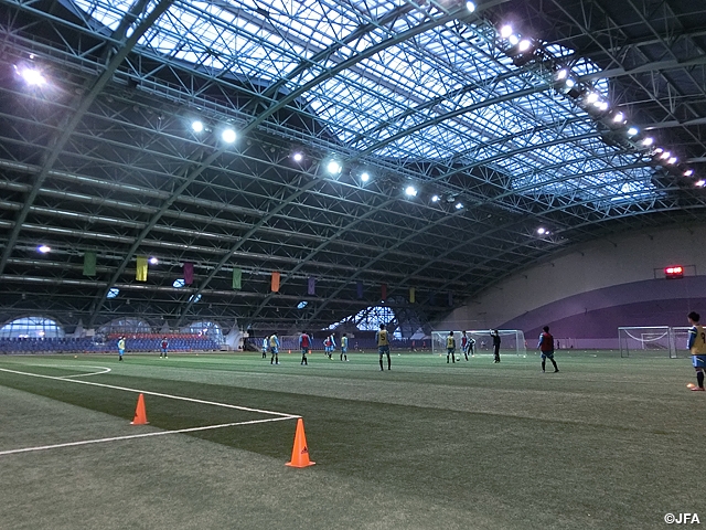 U-17 Japan National Team started its training from morning on the first day in Belarus, as if they were not bit tired after long travel. The condition there was totally different from that in Japan and it was still dim at the starting time of its training at 10 a.m. as well as a temperature reached sub-zero. Players did 2 sets of running for 12 minutes at a pace made by a coach Saito in the running course in front of their staying hotel. Their paces were getting fast naturally in the end, showing energized motivation of them.