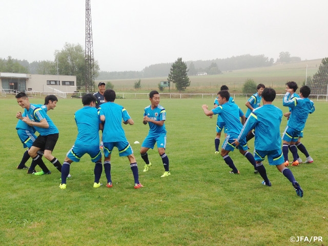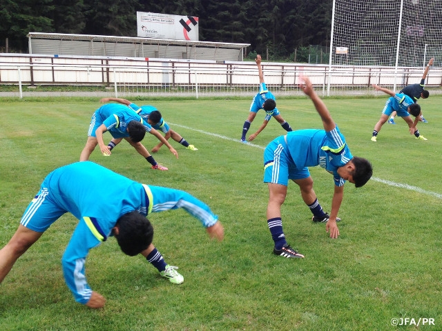 Three more players, including the defender TOMIYASU Takehiro from Avispa Fukuoka U-18, who was called later, the forward NAKAMURA Shunta from Kashiwa Reysol U-18 and the defender HASHIOKA Daiki from Urawa Reds Youth, who were taking part in Kanto Mini National Structure, travelled separately before joining the team. In total, 19 players attended the practice session in preparation for their first match in the championship against Ukraine tomorrow.