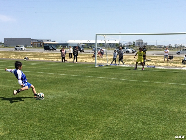 Meanwhile, following the morning session, Kaneko held a penalty shootout with some children who were there to observe the practice. Kaneko stood at the goal mouth and took shots by the children.