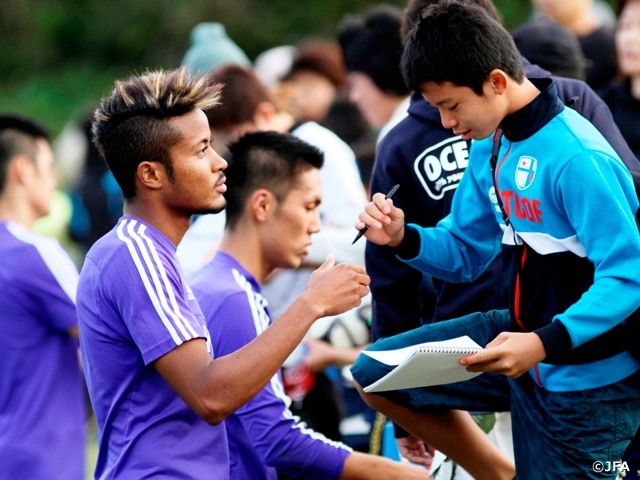At the beginning, the midfielder OHSHIMA Ryota struck the opener. Then more shots followed. The defender UEDA Naomichi headed home and the forward ONAIWU Ado also scored from a header off the midfielder TOYOKAWA Yuta’s corner kick. The forward KUBO Yuya and the defender IWANAMI Takuya found the back of the net before the final whistle as well. During the 54-minute game, all the players displayed their achievements at this camp as well as their aims for the Olympics qualifiers.