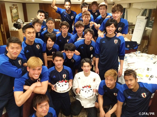 After that, they went to the team’s conditioning coach HAYAKAWA Naoki, who assigned repeated dashing and jogging based on the designated time to let players work up a good sweat. The birthday celebration was held for Ohshima and team chef NISHI Yoshiteru after dinner.