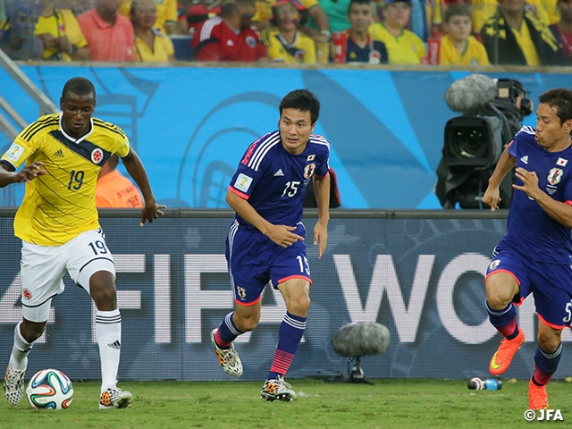 In this interview series “Reflecting on the FIFA World Cup™,” we talked to players who played in the FIFA World Cup™ as a member of the SAMURAI BLUE (Japan National Team). In this first article, we interviewed INAMOTO Junichi, who played in three World Cups (2002 FIFA World Cup Korea/Japan™, 2006 FIFA World Cup Germany™, and 2010 FIFA World Cup South Africa™) and KONNO Yasuyuki, who played in two World Cups (2010 FIFA World Cup South Africa™ and 2014 FIFA World Cup Brazil™).