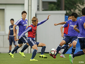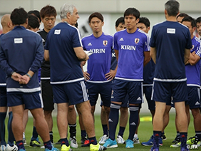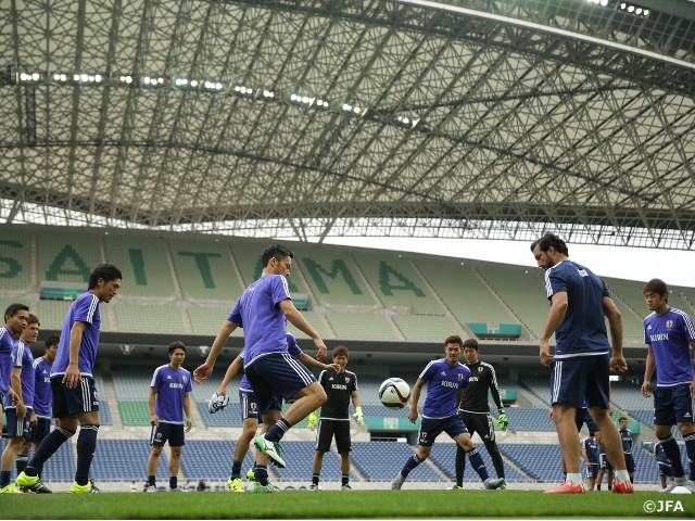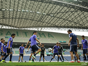SAMURAI BLUE practice tactics and set pieces for World Cup qualifying match against Singapore on 16 June