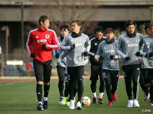 On Monday 18 March, the SAMURAI BLUE (Japan National Team) held their first training session in Yokohama ahead of the KIRIN CHALLENGE CUP 2019 matches against the Colombia National Team and Bolivia National Team, scheduled on Friday 22 at Nissan Stadium and Tuesday 26 at Noevir Stadium Kobe respectively.