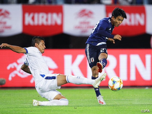 On Sunday 9 June, the SAMURAI BLUE (Japan National Team) faced the El Salvador National Team in the KIRIN CHALLENGE CUP 2019 held at Hitomebore Stadium Miyagi. The team earned a 2-0 victory, thanks to the brace scored by NAGAI Kensuke (F.C. Tokyo), and the 18-year-old phenom, KUBO Takefusa (F.C. Tokyo) made his national team debut as a late substitute.