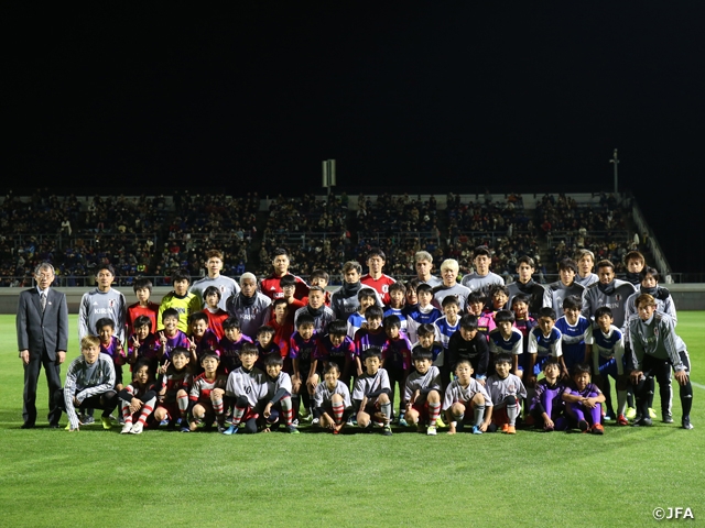 On this day, Bureau Director MIYAMAE Makoto from the Culture and Tourist Bureau of Sakai city, paid a visit to the training ground and gave words of encouragement for the team. Nearly 60 children from Sakai city also visited the team, as they took pictures with the players ahead of the training session.