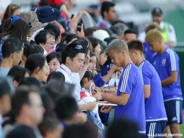 Meanwhile, players like Kagawa, who chipped in for the team's win by scoring his first goal in nine games against Jordan on the previous day, looked laid-back and had an occasion that they responded to the requests of the fans who were at the practice to sign autographs and take photos together.