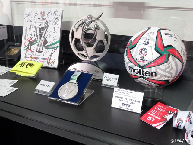 Starting from Friday 8 February, the Japan Football Museum will exhibit items from the AFC Asian Cup UAE 2019, which took place from Saturday 5 January to Friday 1 February. At the second basement floor of the Museum where admission fee is required, the jerseys worn by the players of the Japan National Team, the runners-up medal, Fair-Play Award trophy, memorial shield of the tournament, used ball (with signs from Coach MORIYASU Hajime and the players of the Japan National Team), and the AD card from the tournament will be on display.