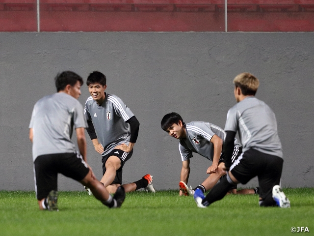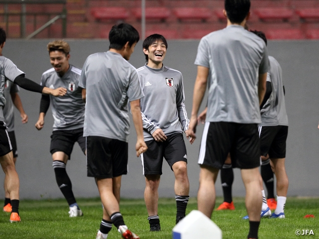 The training session was opened to the media for the first 15 minutes, and the team went through their tactics behind closed doors in a session that lasted nearly 90 minutes. Regarding their next match, the team’s veteran goalkeeper, KAWASHIMA Eiji, mentioned, “Our true value will be tested in this match. We must focus on winning the competition ahead of us.” The team’s defensive leader, TOMIYASU Takehiro, also commented, “We must continue to challenge ourselves to see how much we can cope against strong opponents.”