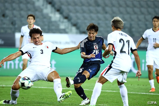 In the 20th minute, INAGAKI Sho (Nagoya Grampus) scored with a trademark long-range shot, giving Japan a 3-0 lead. Japan were relentless, stretching their opponents' five-man defence with slick build-up play and scoring from long-range shots.