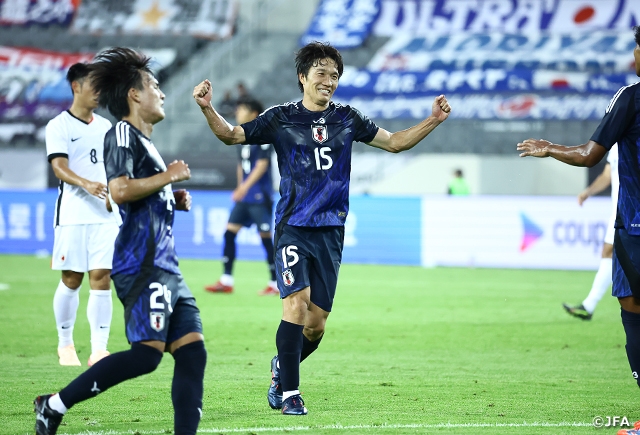 Although Japan's attacking tempo slowed in the second half due to fatigue and the heat, their defence, led by centre-back ARAKI Hayato (Sanfrecce Hiroshima), remained solid. They did concede once from a corner in the 59th minute but added another goal in additional time when Nakamura drove through the middle with a solo effort, penetrated the penalty area and calmly scored Japan’s sixth. Despite the challenging schedule and conditions, Japan secured an emphatic victory in their tournament opener, taking a strong step towards defending their title and claiming a third E-1 Championship crown.