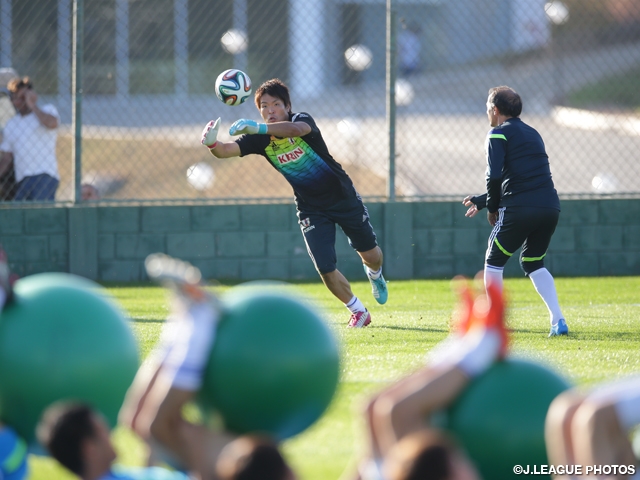 Japan's World Cup team practiced to prepare for their next match against Greece for about a couple of hours at their base in the suburban area of Itu, Sao Paulo State, on 16 June.