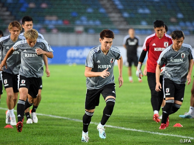 In their route to their seventh consecutive World Cup appearance, Japan’s ability to adapt to the environment and decision making skills will be tested at the very first match of the second round. With Myanmar entering the rainy season, the Japanese squad had been welcomed by torrential rain during their training sessions in back-to-back days. Compared to the previous two days, the team trained under light showers in their final training session ahead of the match.